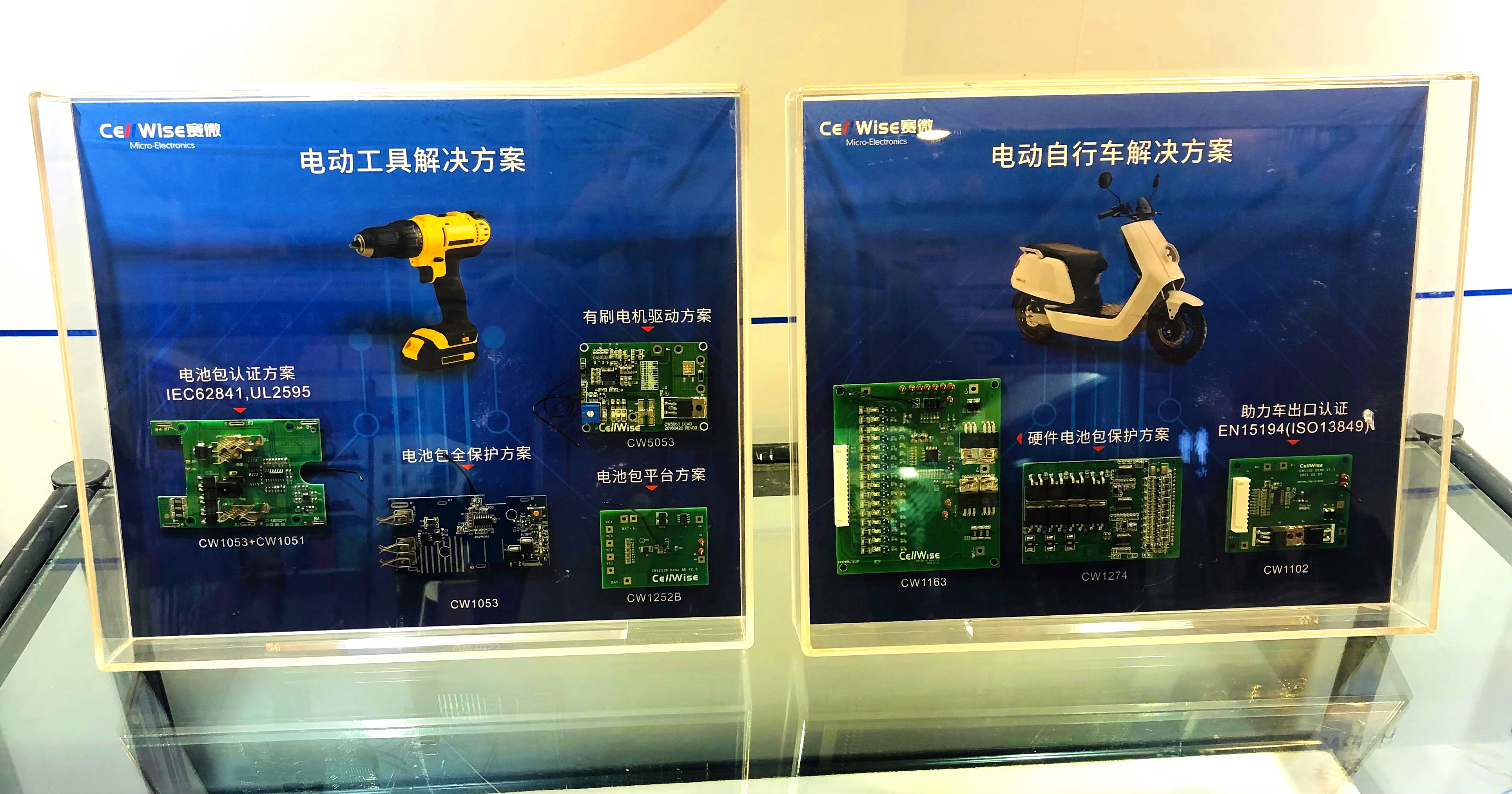 以本次展會(huì)中備受觀眾關(guān)注的電動(dòng)工具解決方案為例,賽微微電為客戶(hù)提供先進(jìn)的電池保護(hù)和電機(jī)控制一站式解決方案,包括全功能鋰電保護(hù)芯片-CW1053、CW1243、CW1233,鋰電池次級(jí)保護(hù)芯片-CW1051,以及電機(jī)控制芯片-CW5053。